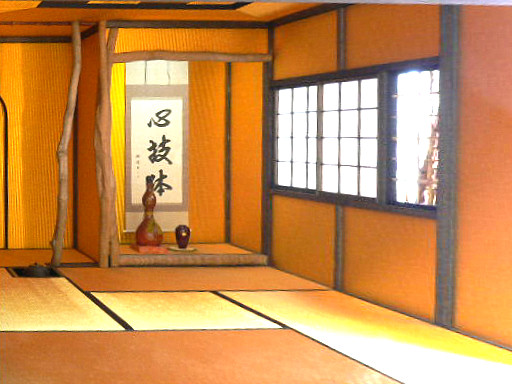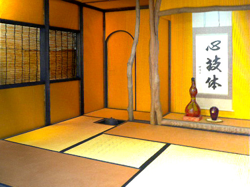 の畳表で作られた4畳半の茶室。