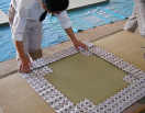 一年訓練生は、一般住宅畳の基礎訓練の他、両面薄縁、鐘小台、六角鐘小台、飾り円形壁掛け、飾り屏風、拝敷、茵、その他を勉強して作ります。